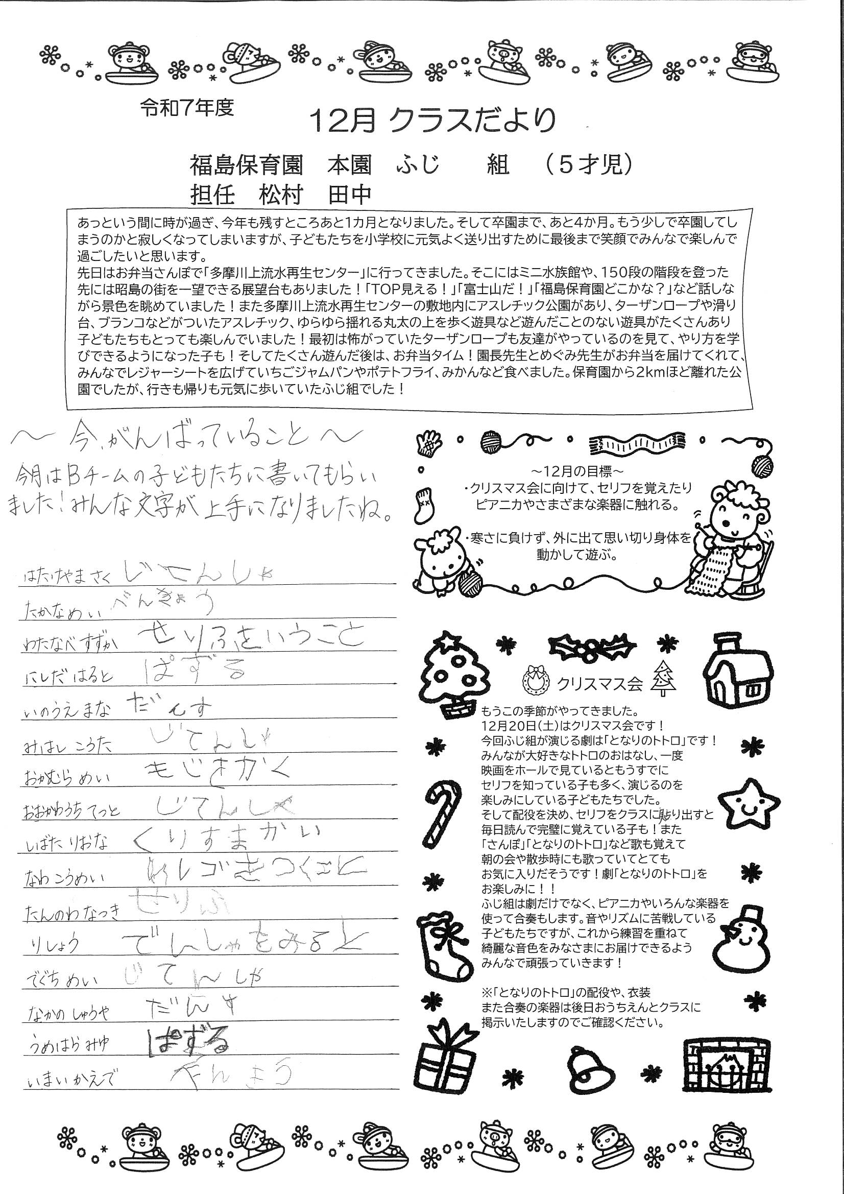クラスだより幼児クラス